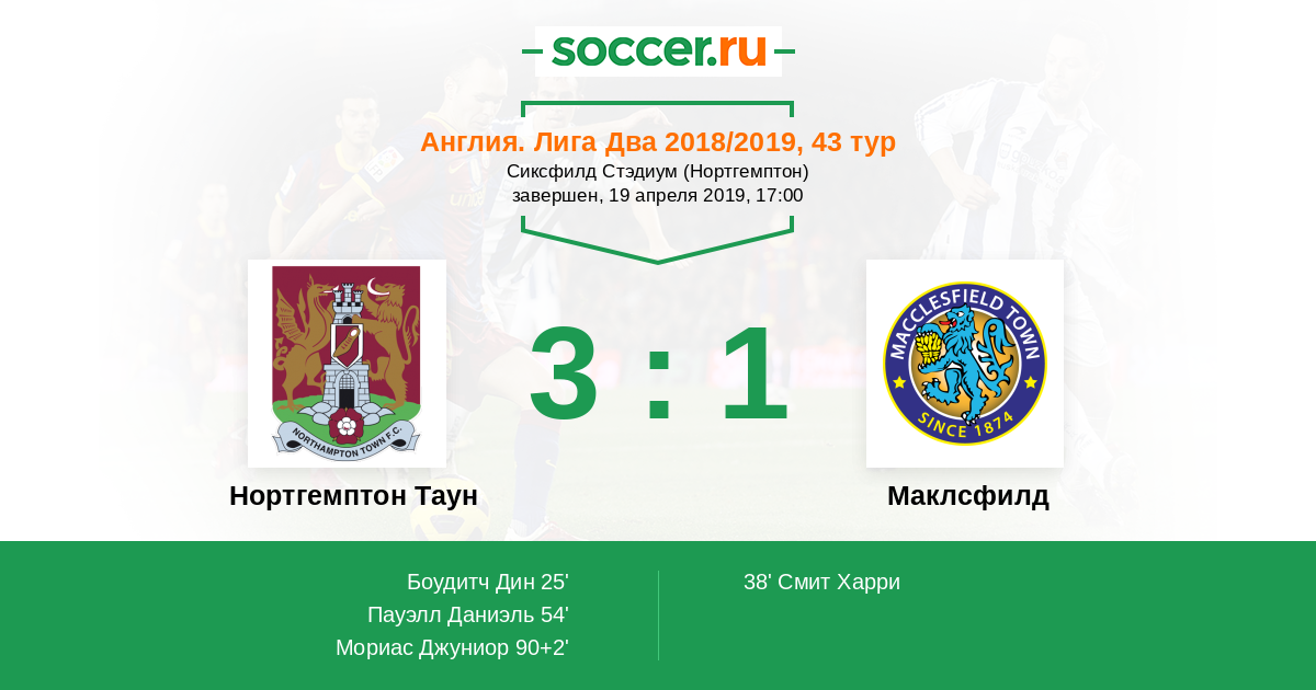 Протокол матча Нортгемптон Таун против Маклсфилд