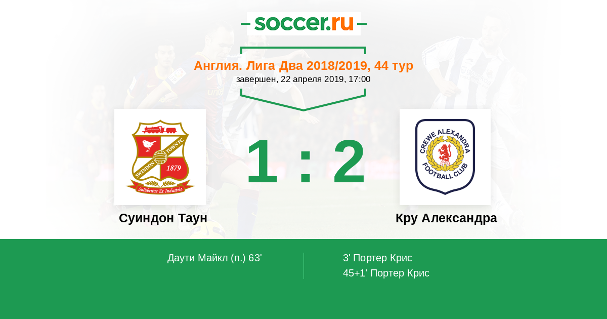 Протокол матча Суиндон Таун против Кру Александра