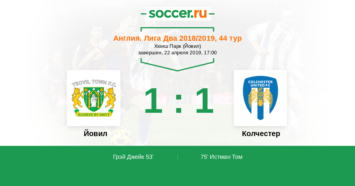 Протокол матча Йовил против Колчестер