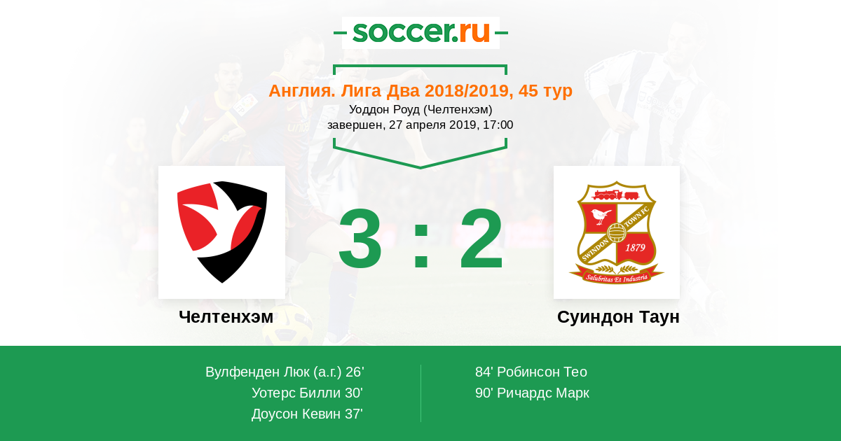 Протокол матча Челтенхэм против Суиндон Таун