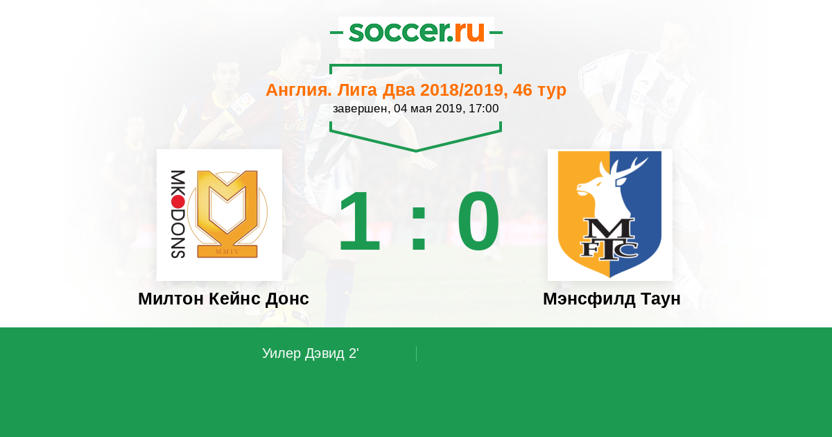 Протокол матча Милтон Кейнс Донс против Мэнсфилд Таун