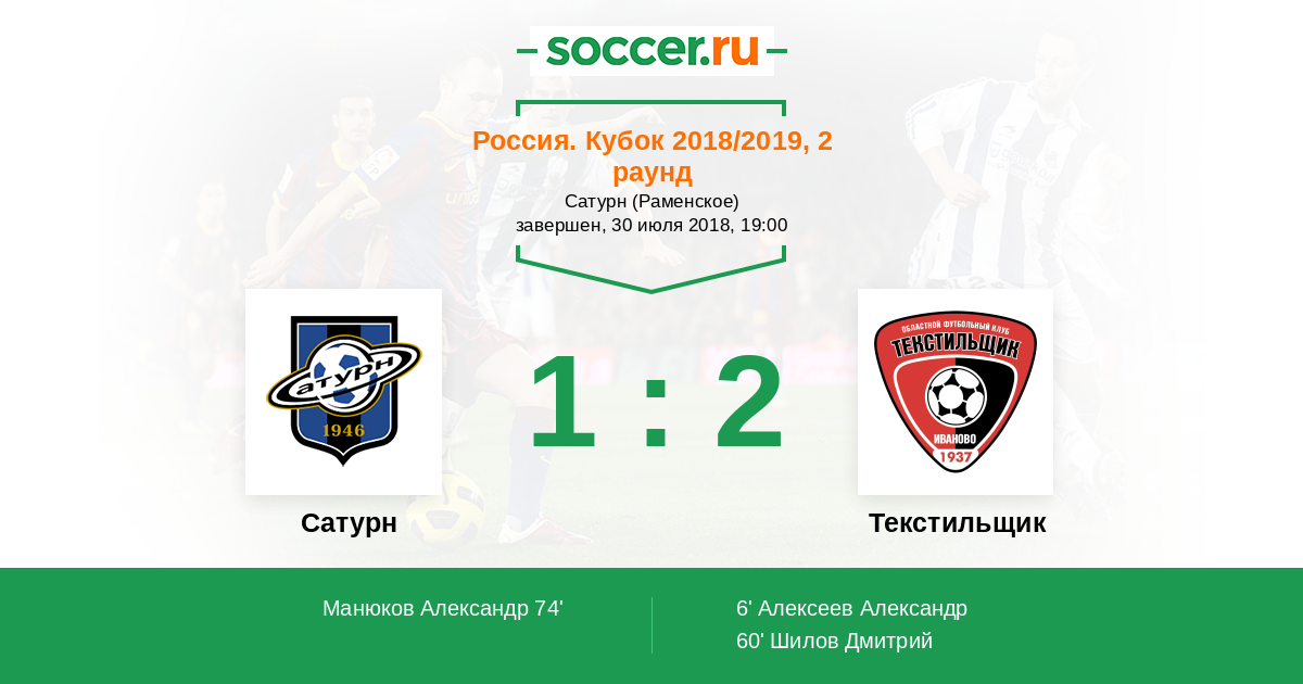 Протокол матча Сатурн против Текстильщик