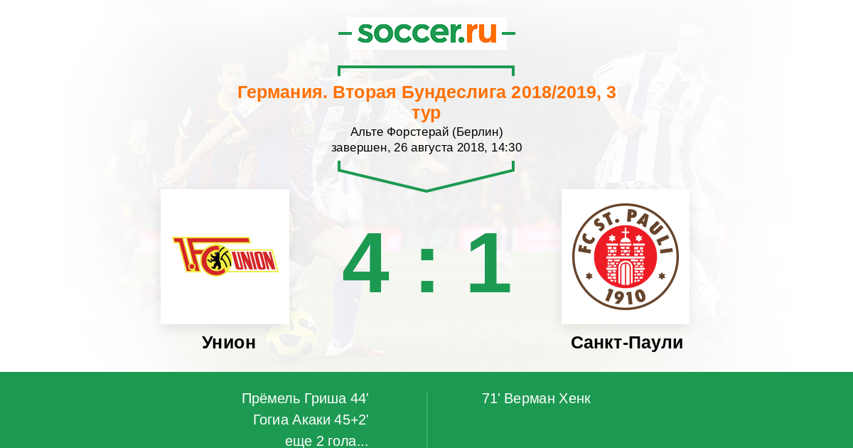 45+2' (2:0) Гогиа Акаки (11) (Триммель Кристофер (28))