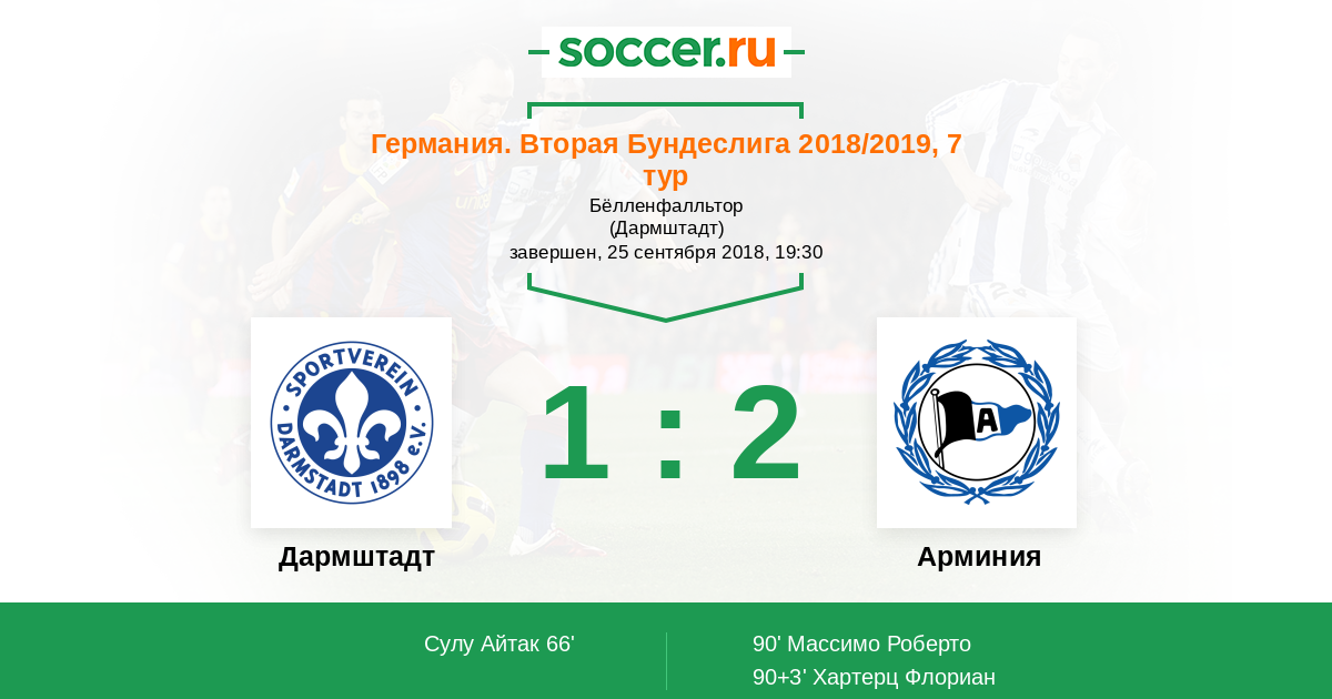 Протокол матча Дармштадт против Арминия