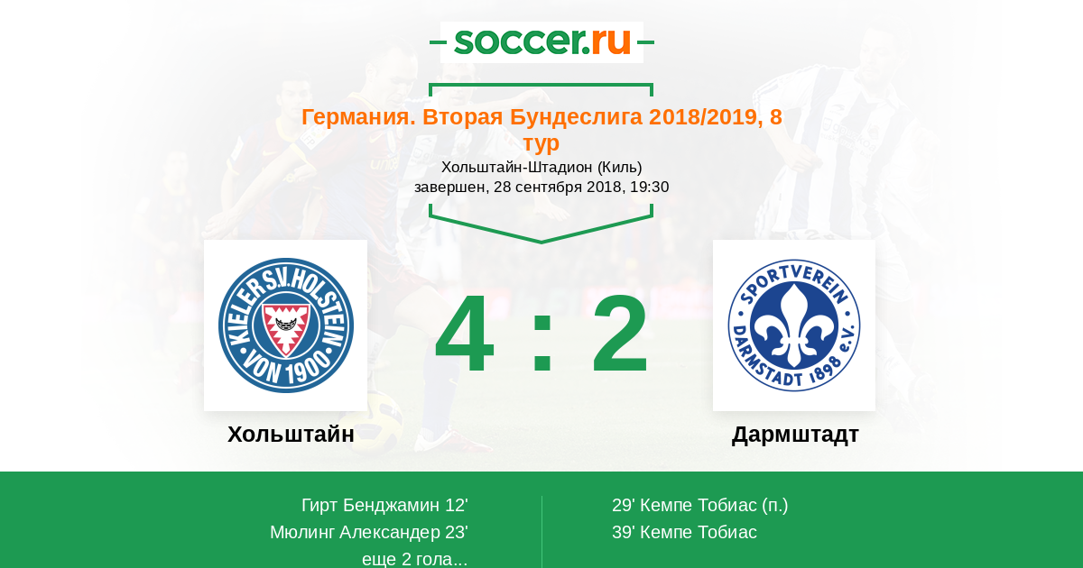 Протокол матча Хольштайн против Дармштадт