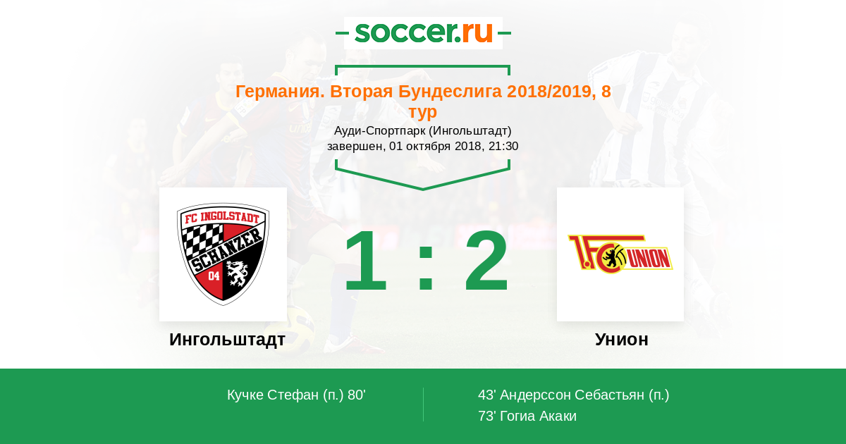 Протокол матча Ингольштадт против Унион