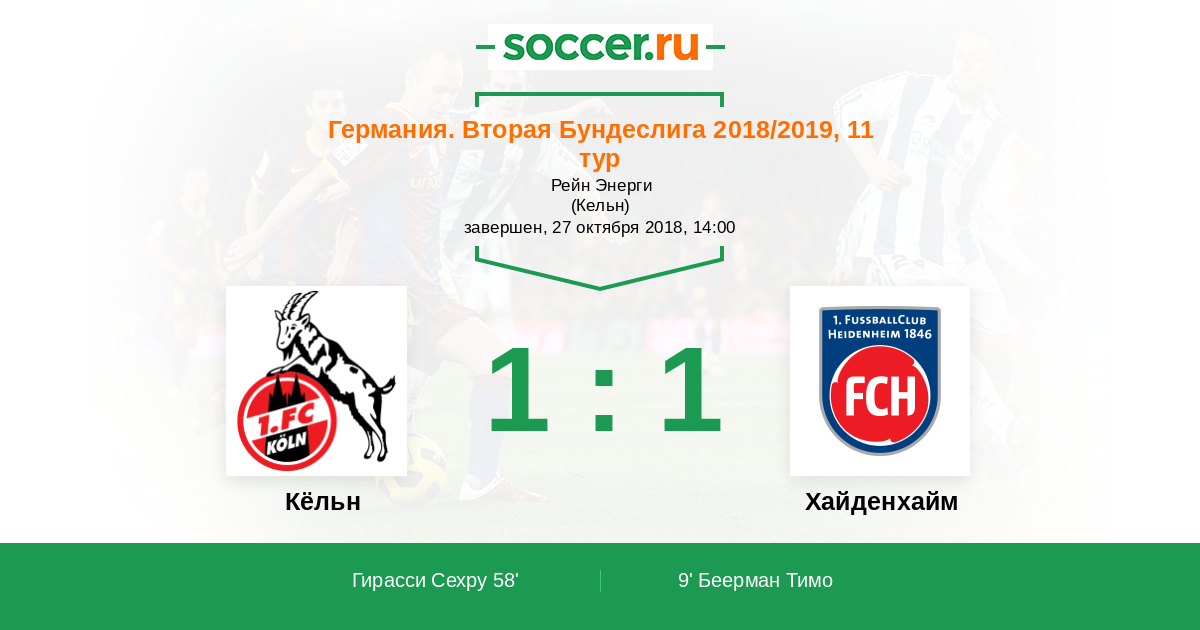Протокол матча Кёльн против Хайденхайм
