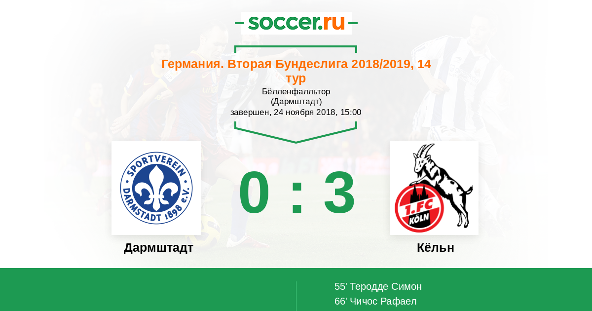 Протокол матча Дармштадт против Кёльн