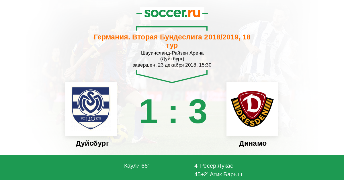 Протокол матча Дуйсбург против Динамо