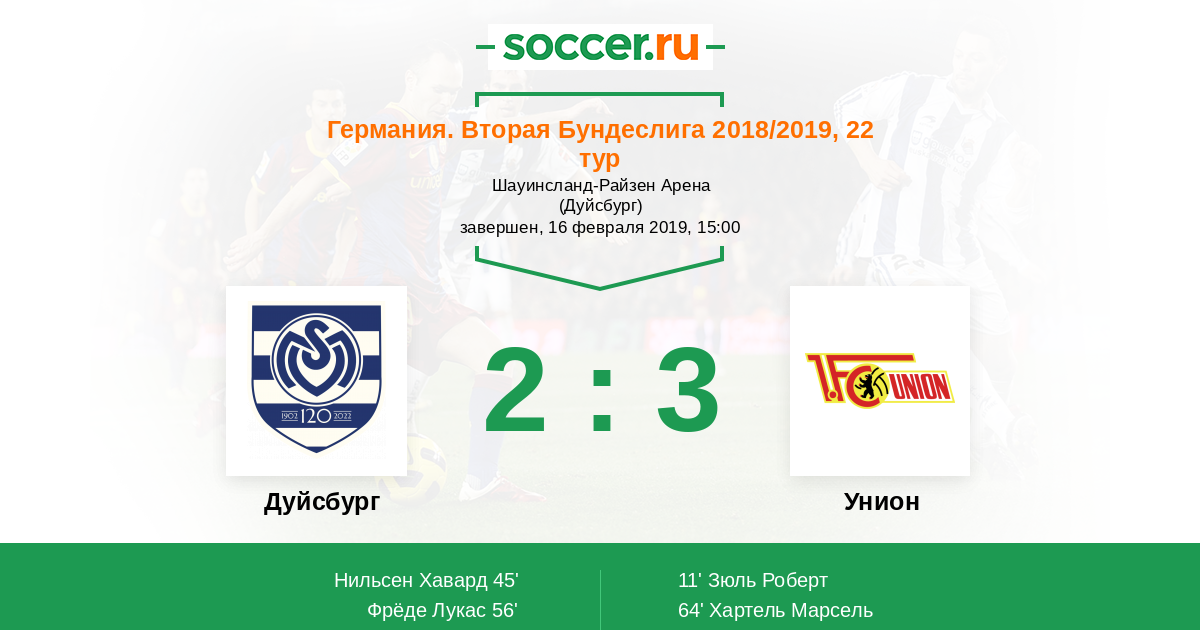 Протокол матча Дуйсбург против Унион