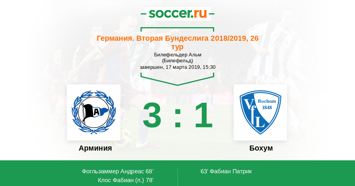 Протокол матча Арминия против Бохум