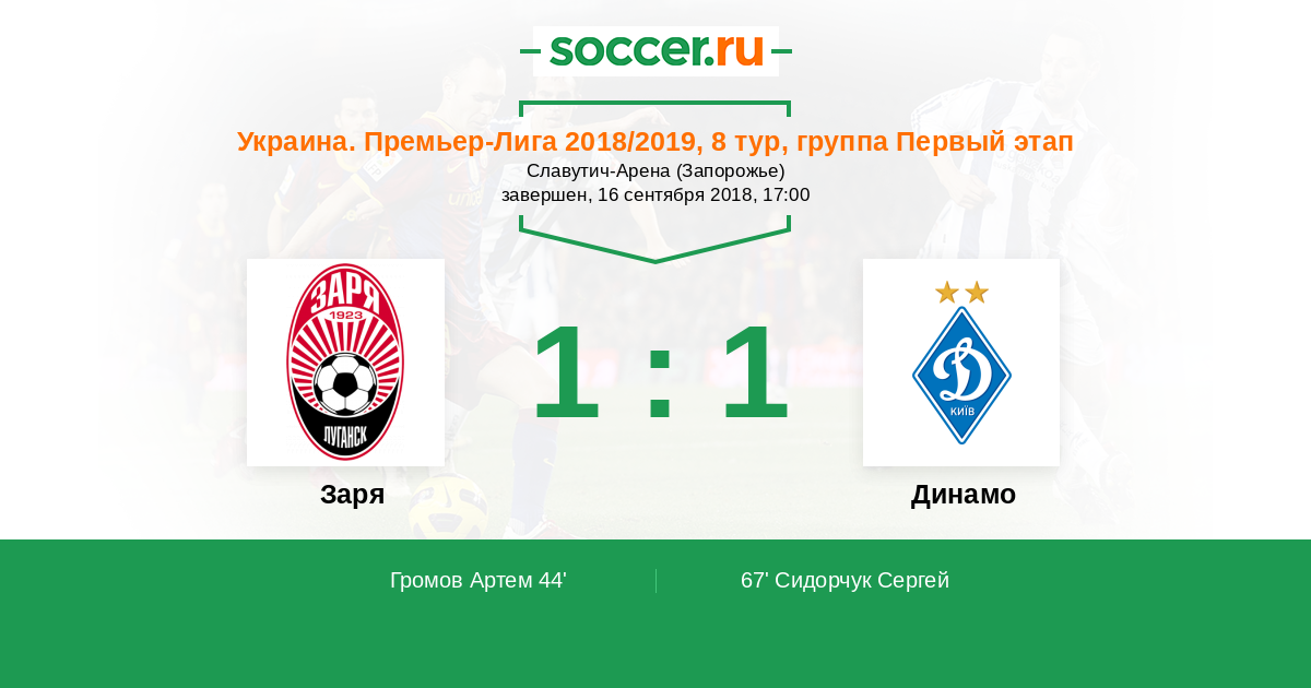 Протокол матча Заря против Динамо