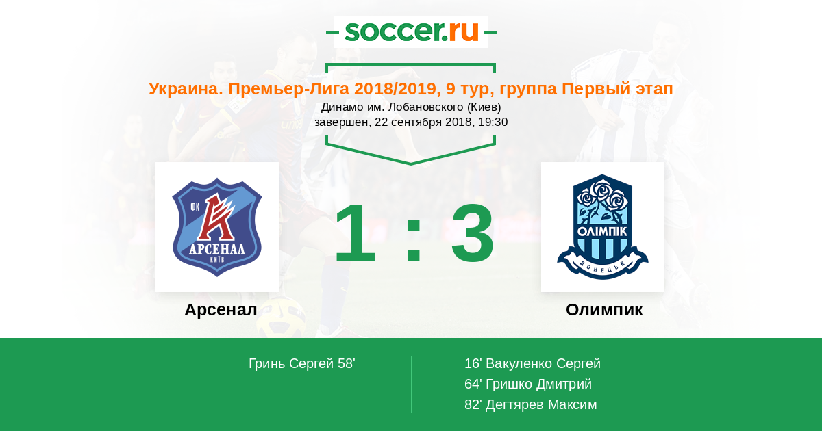 Протокол матча Арсенал против Олимпик