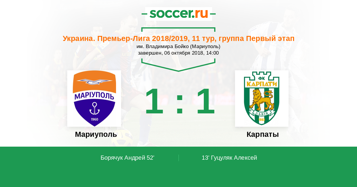 Протокол матча Мариуполь против Карпаты