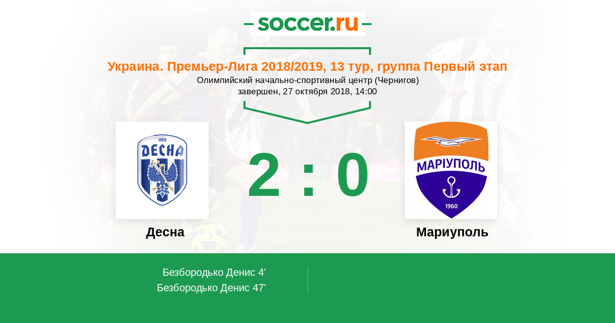 Протокол матча Десна против Мариуполь