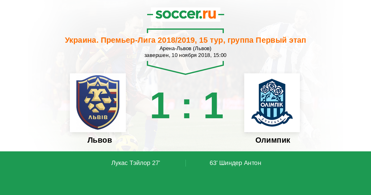 Протокол матча Львов против Олимпик