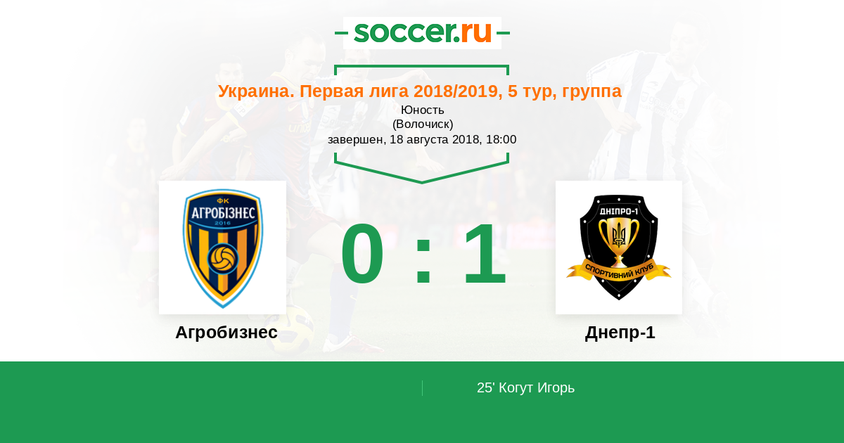 Протокол матча Агробизнес против Днепр-1
