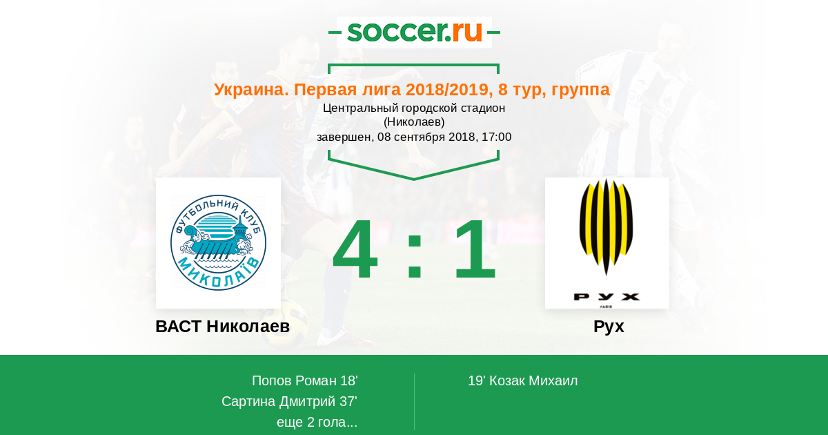 Протокол матча ВАСТ Николаев против Рух