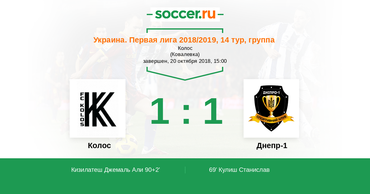 Протокол матча Колос против Днепр-1