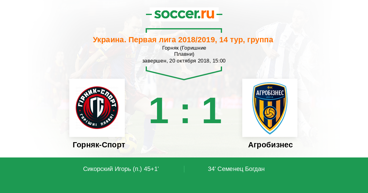 Протокол матча Горняк-Спорт против Агробизнес