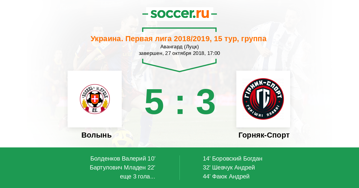 Протокол матча Волынь против Горняк-Спорт