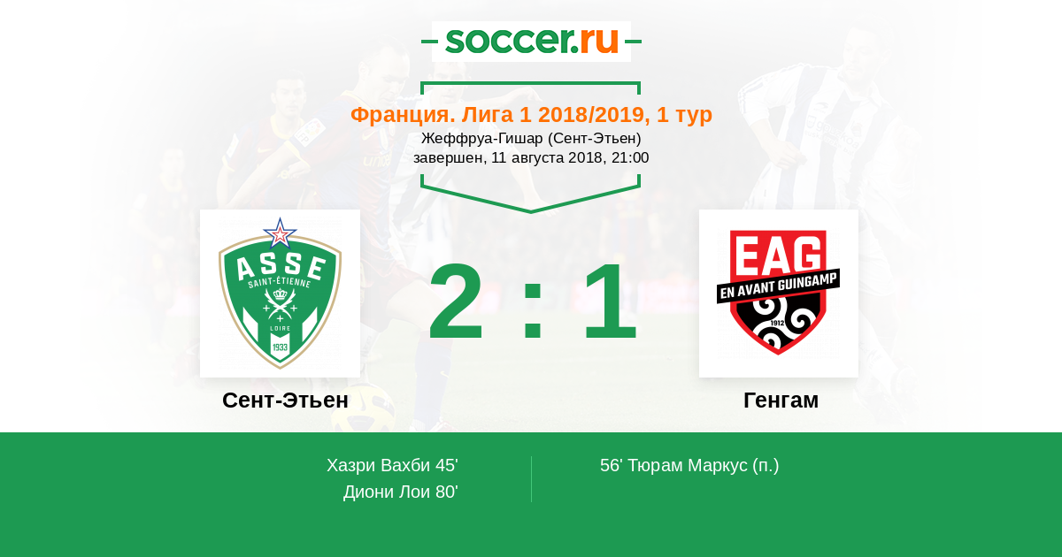 Протокол матча Сент-Этьен против Генгам