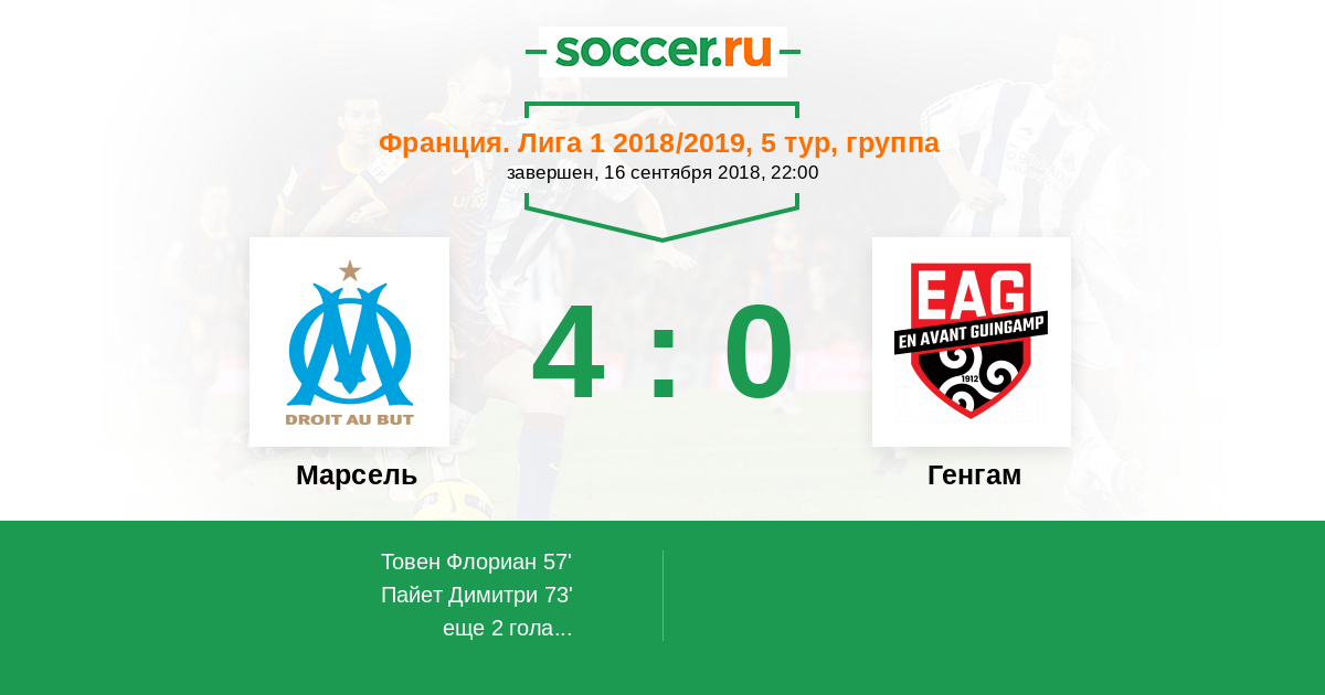 Протокол матча Марсель против Генгам