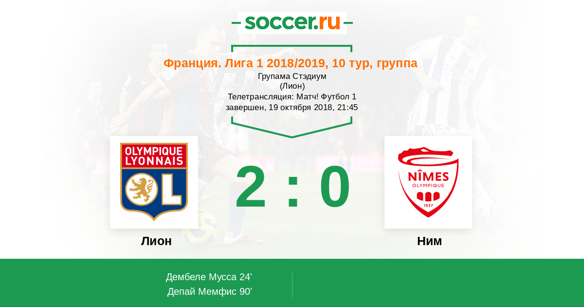 Протокол матча Лион против Ним