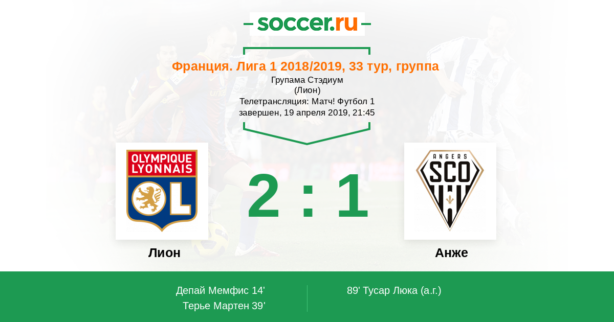 Протокол матча Лион против Анже