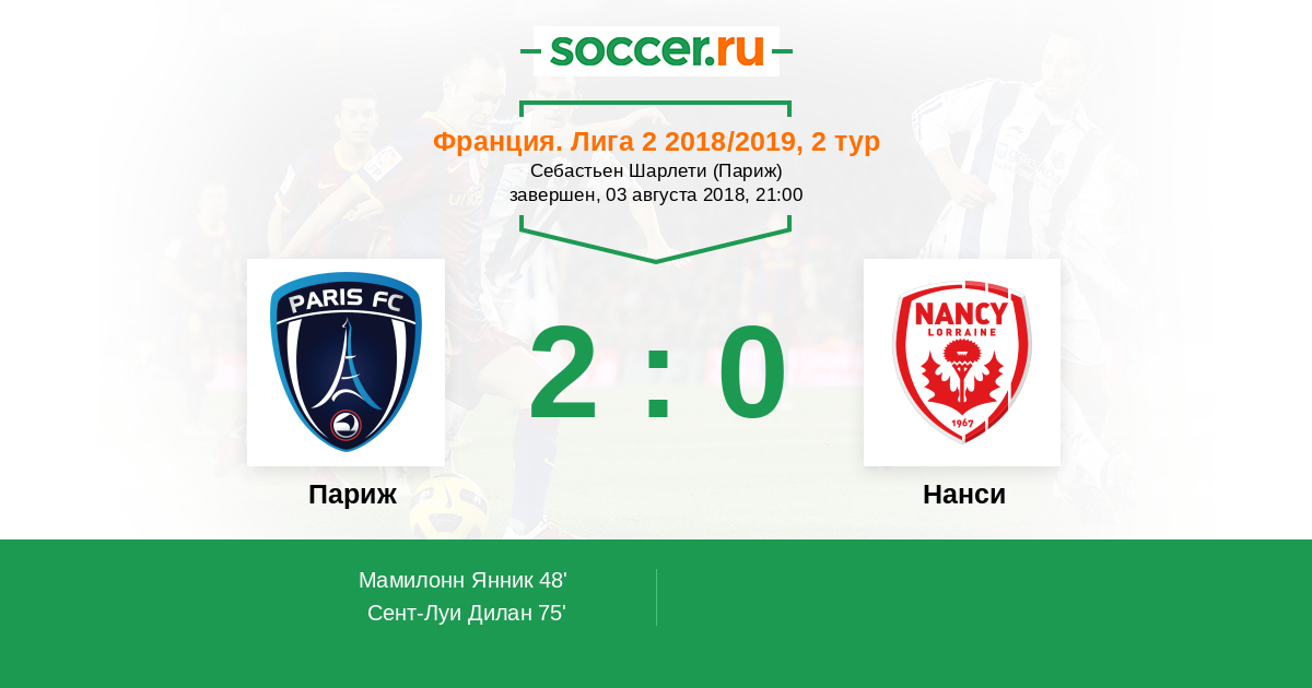Протокол матча Париж против Нанси