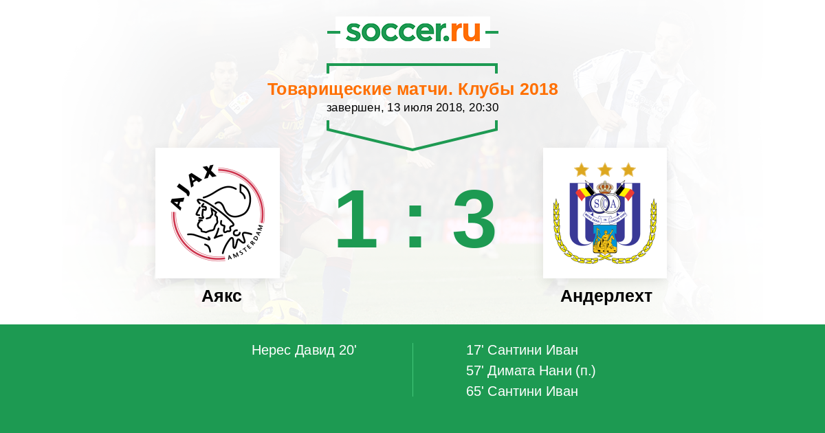 Протокол матча Аякс против Андерлехт