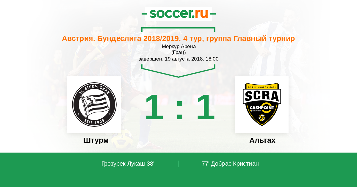 77' (1:1) Добрас Кристиан (10) (Линхарт Андреас (7))