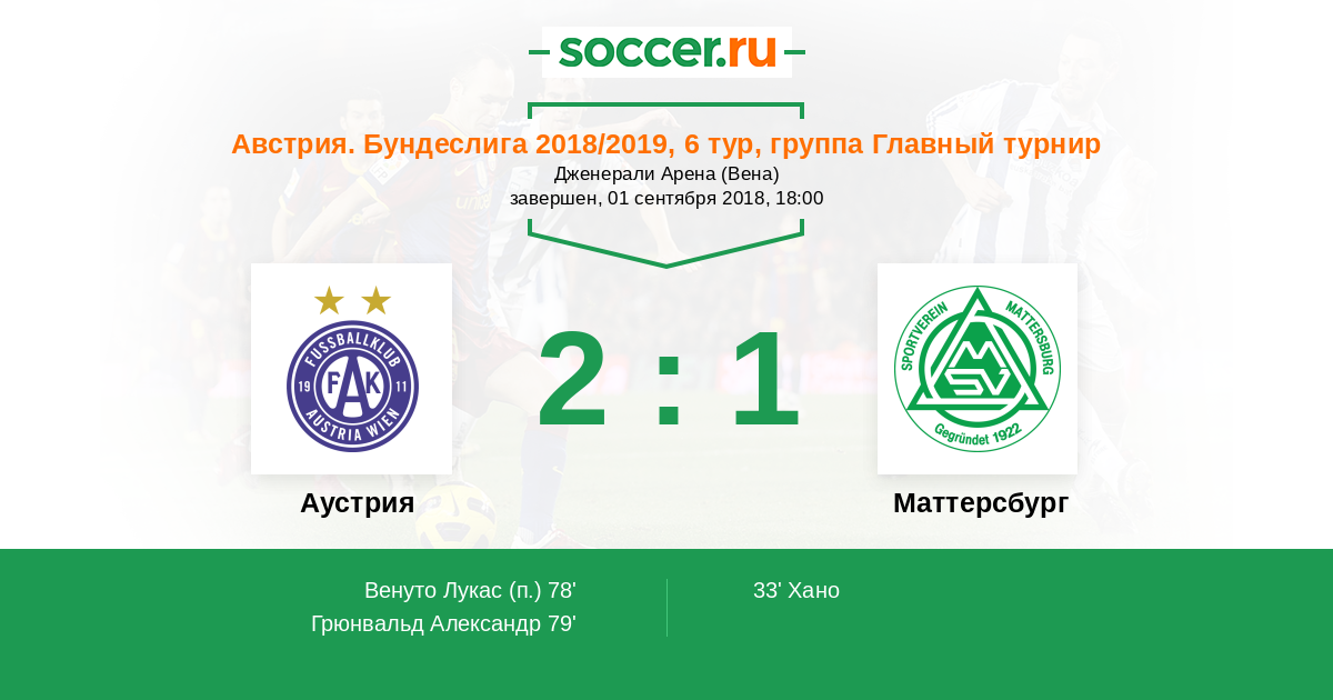 Протокол матча Аустрия против Маттерсбург
