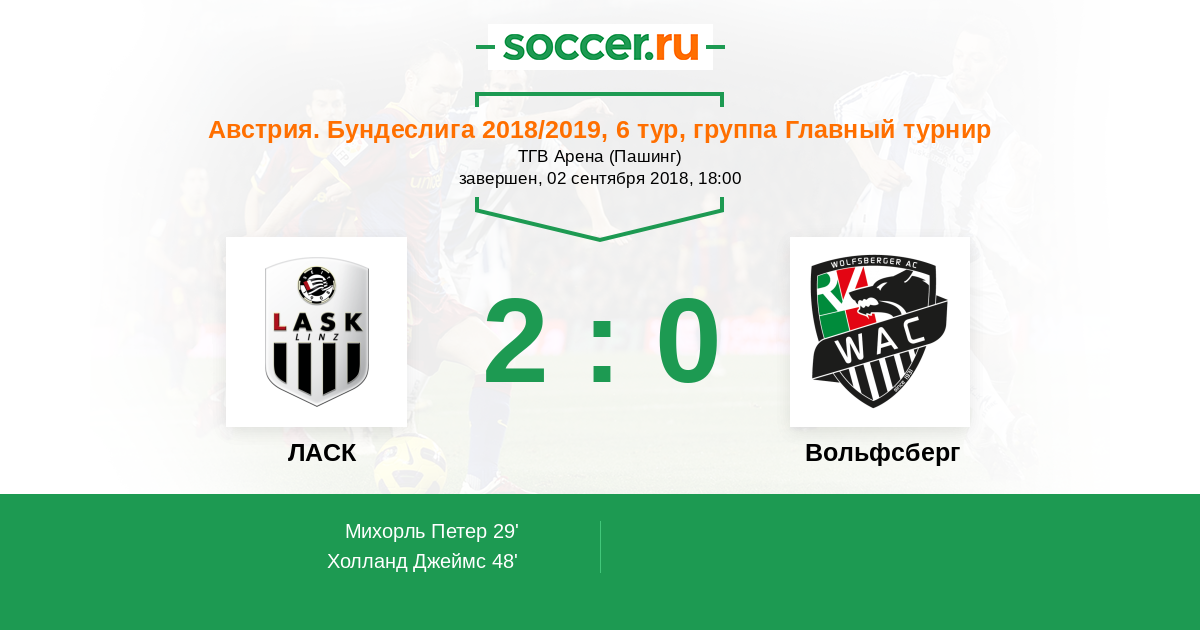 Протокол матча ЛАСК против Вольфсберг