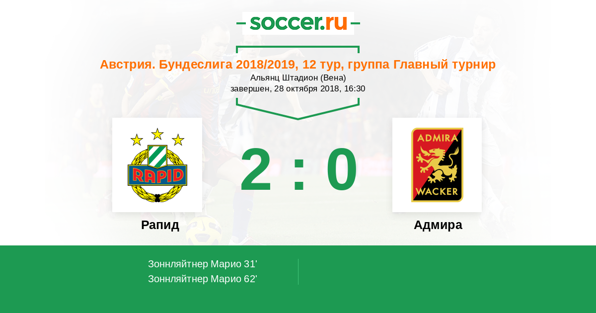 62' (2:0) Зоннляйтнер Марио (6) (Мартич Мануэль (15))