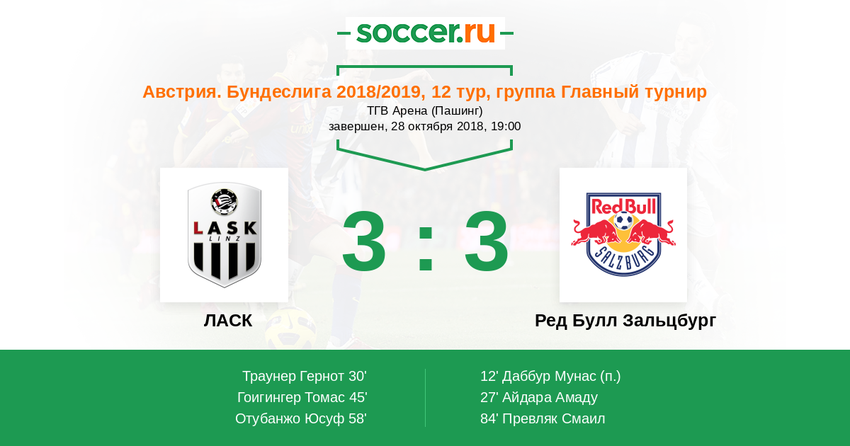 Протокол матча ЛАСК против Ред Булл Зальцбург