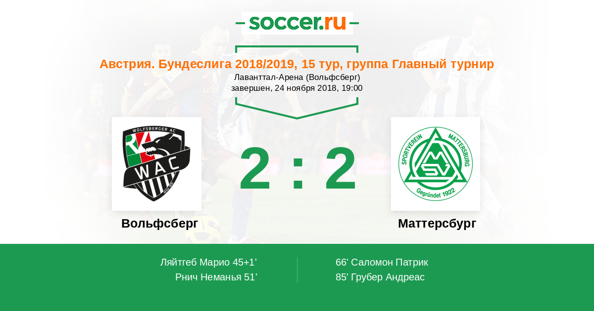 45+1' (1:0) Ляйтгеб Марио (16) (Линдль Михаэль (10))