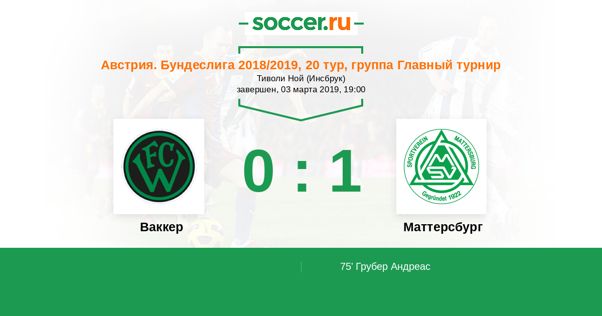 Протокол матча Ваккер против Маттерсбург