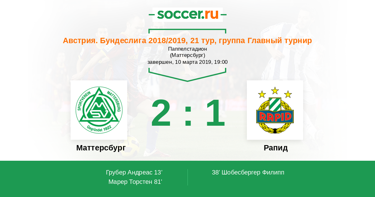 13' (1:0) Грубер Андреас (11) (Саломон Патрик (21))