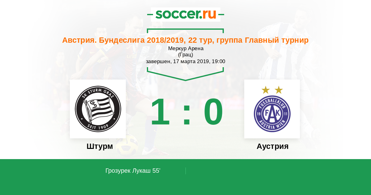 Протокол матча Штурм против Аустрия