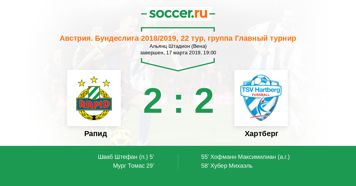 Протокол матча Рапид против Хартберг