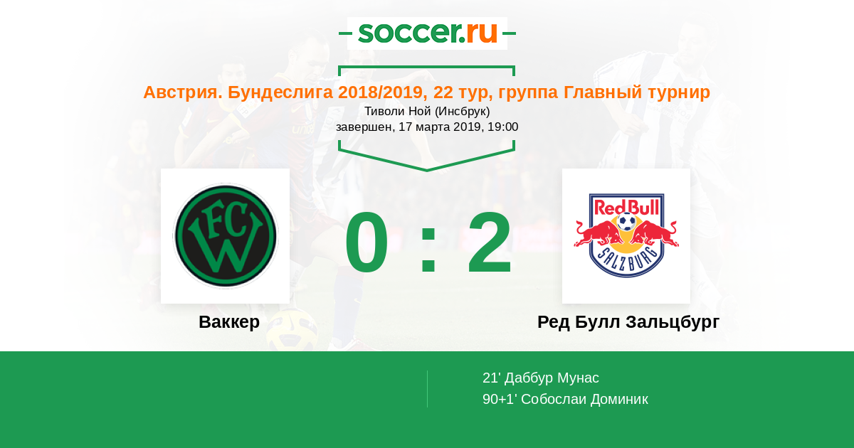 Протокол матча Ваккер против Ред Булл Зальцбург