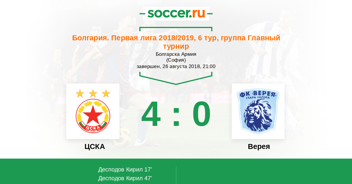 Протокол матча ЦСКА против Верея