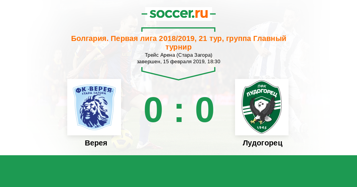 Протокол матча Верея против Лудогорец