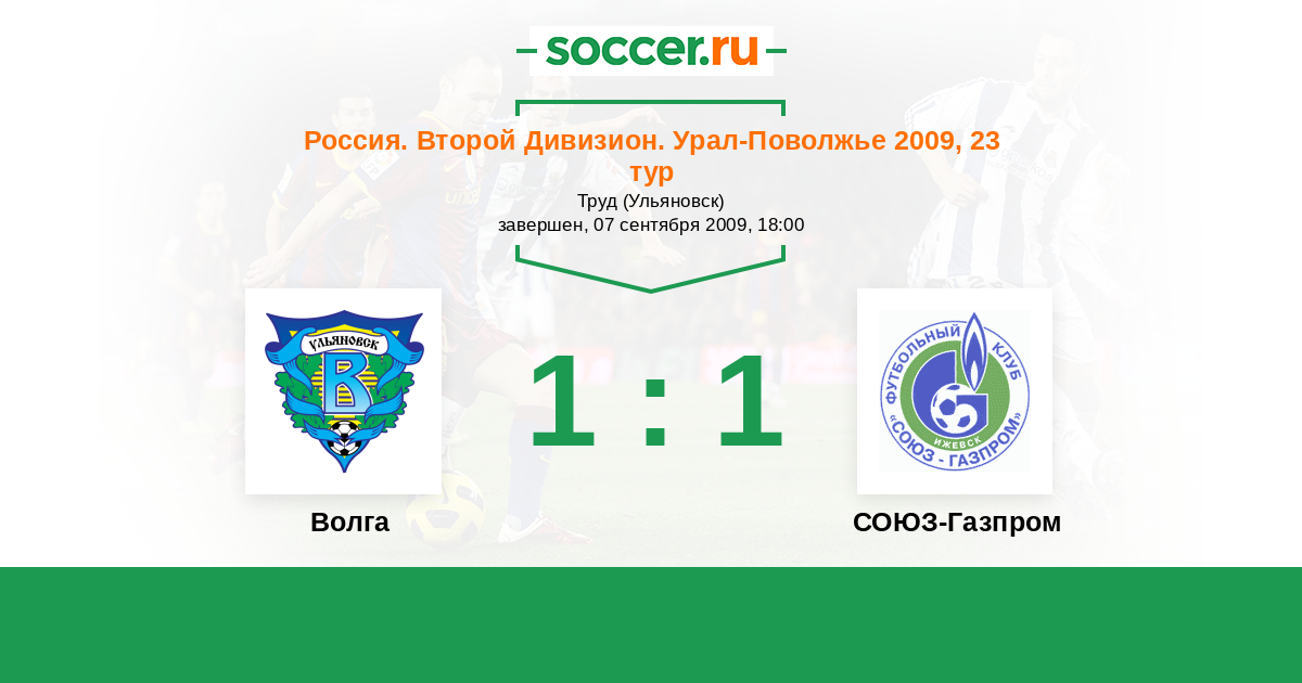 Россия. Вторая лига. Группа 4 30.05.2009 СОЮЗ-Газпром Логотип футбольный клуб СОЮЗ-Газпром (Ижевск) 2:0 Логотип футбольный клуб Волга (Ульяновск) Волга