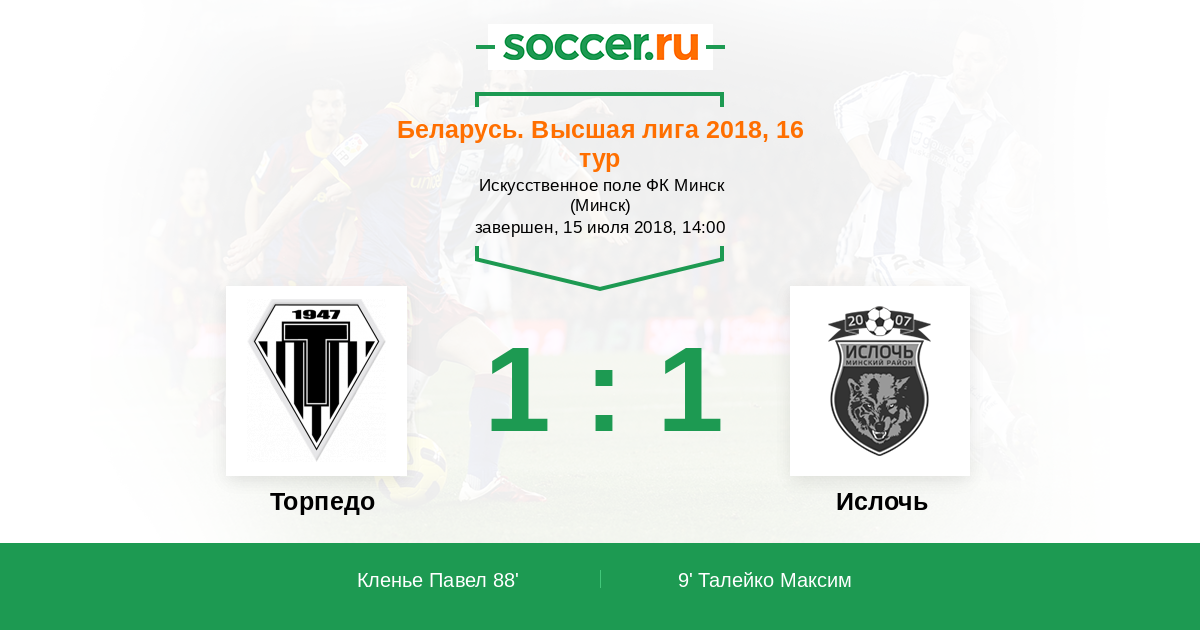 Протокол матча Торпедо против Ислочь
