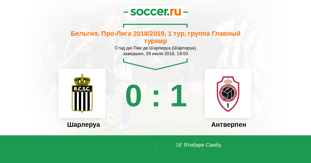 Протокол матча Шарлеруа против Антверпен