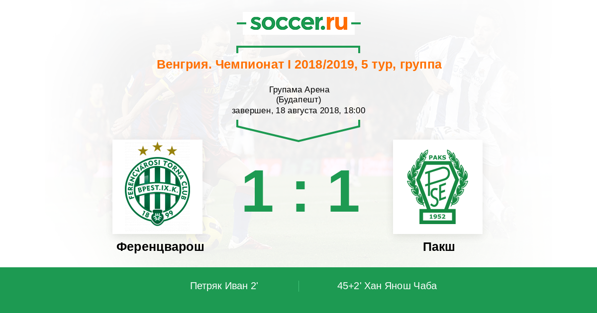 Протокол матча Ференцварош против Пакш