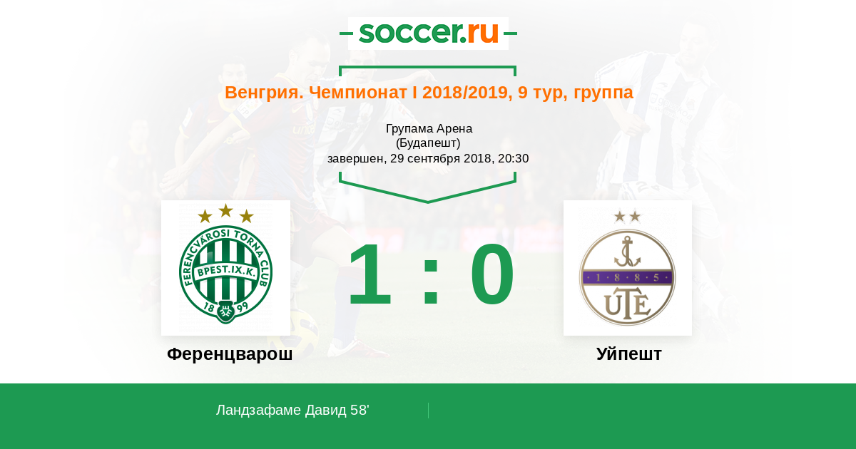 Протокол матча Ференцварош против Уйпешт