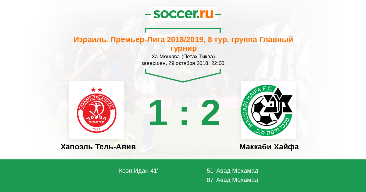 Протокол матча Хапоэль Тель-Авив против Маккаби Хайфа